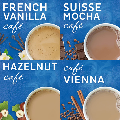 - French vanilla, hazelnut and café Vienna canisters make about 9 servings, and the suisse mocha canister makes about 8 servings.