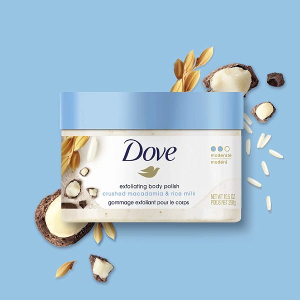 - CARE WHILE YOU EXFOLIATE – Massage Dove Exfoliating Body Polish onto wet skin in the shower, before you cleanse with your favorite Dove Body Wash or Dove Beauty Bar