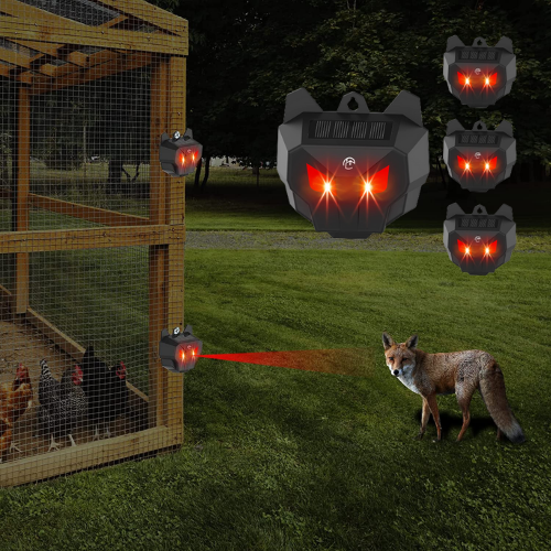 - This solar-powered animal repellent device is designed to scare away animals by strobe flashing red light like fire – based on the theory that warm-blooded animals are afraid of fire.