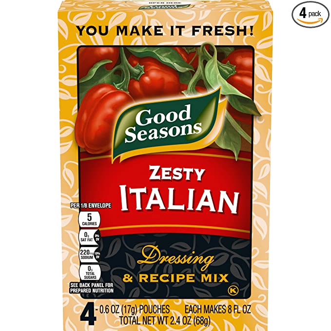 - One 2.4 oz. box of Good Seasons Zesty Italian Dry Salad Dressing and Recipe Mix