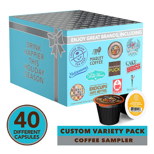 - HUGE 40 PACK OF COFFEE PODS WITH NO DUPLICATES – Enjoy a wide variety of your favorite coffee brands like The Pioneer Woman, SkinnyGirl, Crazy Cups, Cold Stone, Wolfgang Puck, Cake Boss, and So Much More