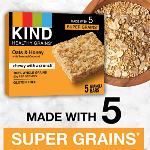 40-Count KIND Healthy Grains Bars, Oats & Honey with Toasted Coconut $12.98 (Reg. $31.13) – 32¢ each or $1.62 each box! LOWEST PRICE!