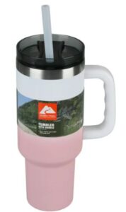 Ozark Trail 40 oz Vacuum Insulated Stainless Steel Tumbler Pink & White