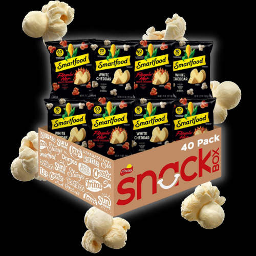 - Includes 40 individually wrapped snacks: (20) bags each of 0.5 oz Smartfood Popcorn Flamin’ Hot and 0.5 oz Smartfood White Cheddar Popcorn