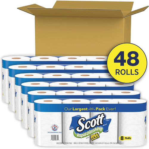 Hop over to Amazon and get a deal on 48 Double Rolls Scott Rapid-Dissolving Toilet Paper. Contains 6 packs of 8 double rolls; 48 double rolls in total. These are specially made for use in RVs, boats, buses and similar applications. These rapid dissolving, 1-ply bathroom tissue breaks down four times faster than the leading brand. Septic-safe and sewer-safe, yet soft and gentle on skin. Clip the $2 off coupon on your first Subscribe and Save order. Choose to Subscribe & Save, and you will score a great deal. Just make sure you have 5 or more items in your monthly order to max out the available discount of 15% off this item = $32.44 minus the coupon = $30.44 or just $5.07 each 8-count pack or 63¢ each roll! Subscribe & Save shipping is free!