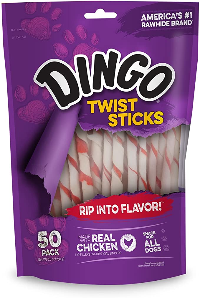 50 Count Dingo Twist Sticks Rawhide Chews $3.19 (Reg. $13.99) – $0.06 per Chew, Made With Real Chicken + 15-Count Dingo Goofball Chews as low as $7.47 Shipped Free (Reg. $13)
