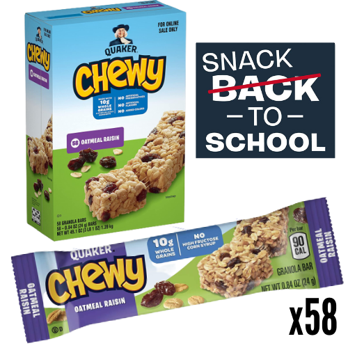- Includes 58 individually wrapped Chewy Granola Bars, Oatmeal Raisin flavor