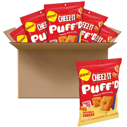- Includes 6 3-ounce single-serve pouches of ready-to-eat Cheez-It Puff’d Double Cheese Cheesy Baked Snacks