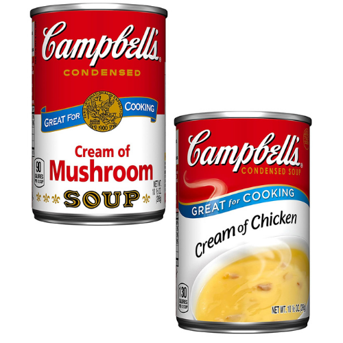 - Prep for future recipe creation by stocking two of our popular cream soups—Cream of Chicken & Cream of Mushroom