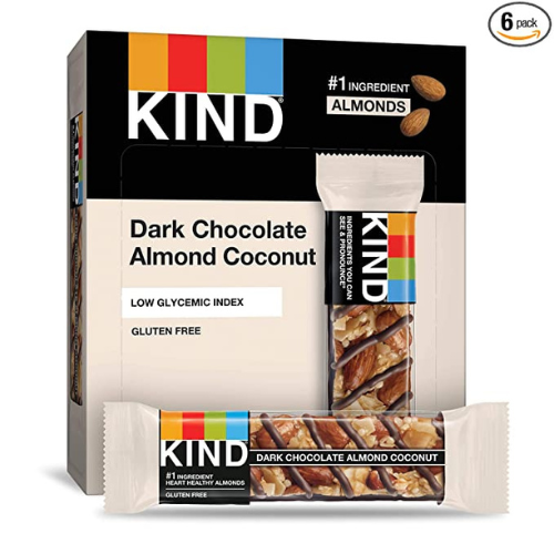 • Contains (6) 1.4 oz KIND bars, dark chocolate Almond & coconut