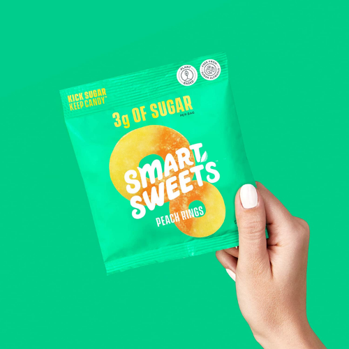 - KICK SUGAR: Feel good about candy with SmartSweets. Just 3g of sugar and 100 calories for the whole bag – that’s 88% less sugar than the other peach rings! Smartly sweetened with high-quality, natural sweeteners: monk fruit, stevia and allulose.