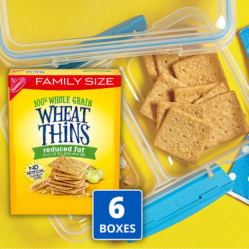 • Six 12.5 oz family Size boxes of Wheat Thins Reduced Fat whole grain wheat crackers