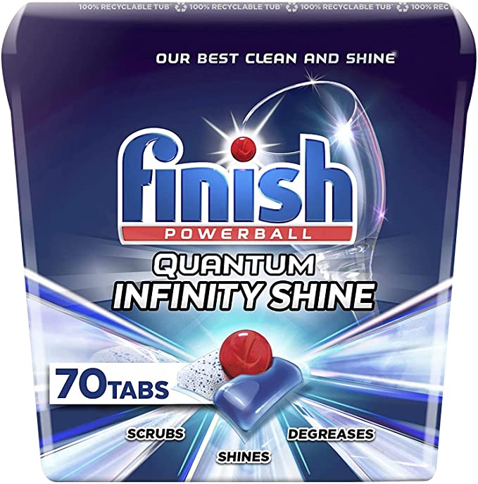 - NEW FINISH QUANTUM INFINITY SHINE: the new Finish Quantum Infinity Shine scrubs, degreases, and shines delivering our best ever in clean and shine vs. Finish Quantum with 3 separate fast dissolving chambers