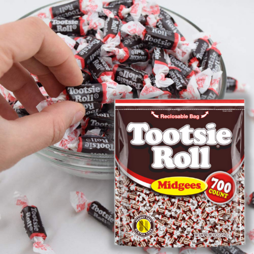 Hop over to Amazon and get a deal on 700-Count Tootsie Roll Chocolatey Twist Midgees Resealable Standup Bag, 77.76 Ounce. Tootsie Roll Midgees are everyone’s favorite bite-size Tootsie treat. Great for sharing with family, friends, or coworkers in the office. An iconic American treat, Tootsie Rolls offer a perfectly-balanced cocoa taste with a delightfully soft and chewy texture.