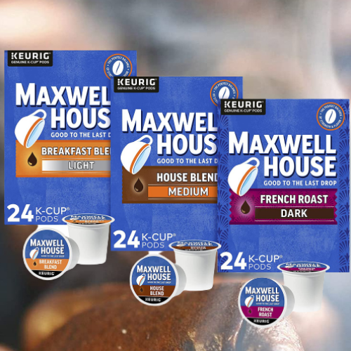 Hop over to Amazon and get a deal on 72-Count Maxwell House Variety Pack with Breakfast Blend Light Roast. Maxwell House K-Cup Coffee Pods Variety Pack have a consistently great taste that’s always good to the last drop. This variety pack contains: 24 Breakfast Blend light roast, 24 House Blend medium roast, and 24 French Roast dark roast k cup coffee pods. Clip the 50% coupon to drop the price!