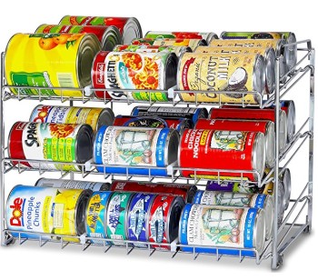 Stacking cans is very 1990’s.  It’s time to grab a can rack.  Now you can keep like things together and see when you are out of corn instead of thinking there still has to be some in the pantry somewhere.  Each spot can keep a different vegetable, plus there is room for tomatoes, soups, olives and anything else you bring home. We loved ours so much we have two!