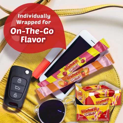 - Individually wrapped STARBURST Swirlers Chewy Candy Sticks fruity flavor combination unlike any other; great for candy dishes and road trips