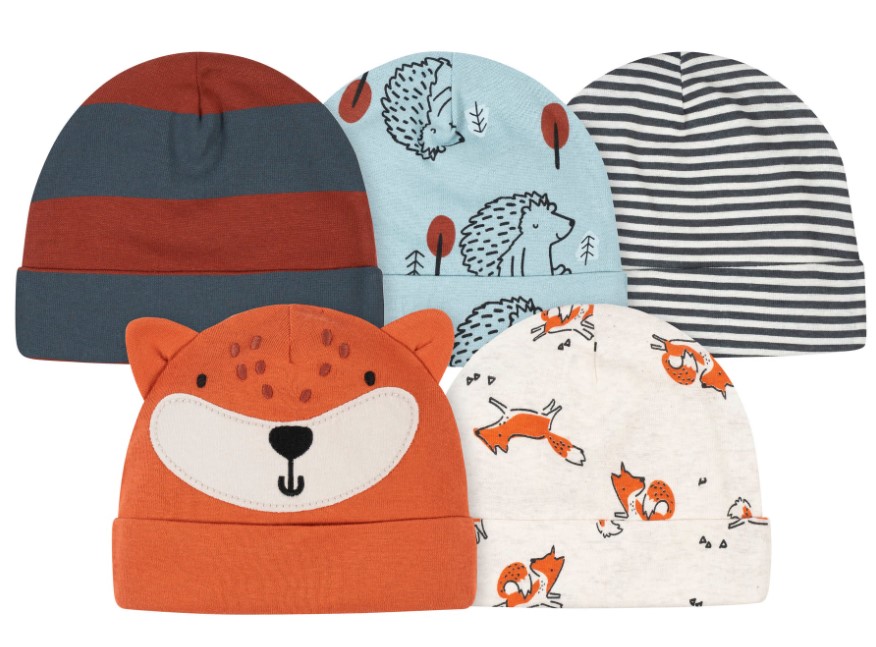 5-Pack Baby Boys Fox & Hedgehog Caps – $5 (reg. $18)
