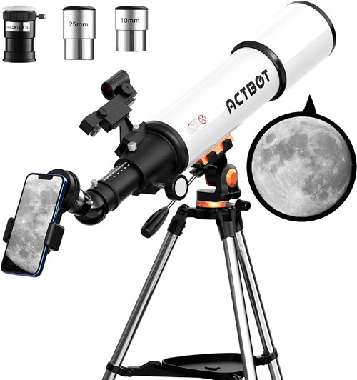 - ACTBOT Telescope Bring You Realistic Vivid Image: The telescope with 80mm extra large aperture will capture more lights. WIth multi-fully high transmission coated all-optical lens will enhance image brightness and color saturation. With this telescope, you can easily observe beautiful birds frolicking in the forest in the distance.