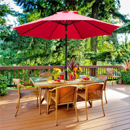 Hop over to Walmart and get a deal on 9 Foot Patio Umbrella with Crank and Push Button to Tilt, Red. This stylish patio umbrella will create a cool and nice shade over your patio furniture set. The market umbrella can be effortlessly opened and closed with a hand-crank and easily tilted in 2 directions with the push of a button.