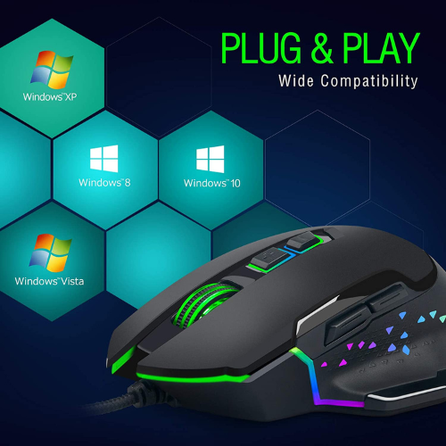Want to improve your gaming skills by having more control over your mouse? This Ergonomic RGB LED Lighting Wired Gaming Mouse is faster and more precise than a standard mouse. It includes 7 LED lighting modes that can be toggled on and off for your gaming computer or gaming laptop. The ergonomic design allows for a natural claw grasp, which in turn eases stress, boosts efficiency, and prevents fatigue even after long use.