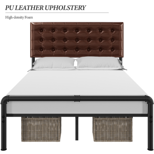 Add texture and warmth to your home with Full Size Metal Platform Bed with Square Tufted Faux Leather Upholstered Headboard for just $136.98 Shipped Free (Reg. $189.99)