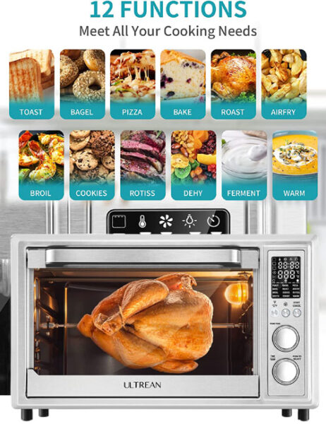 - Capacity: 32qt/30L; 12 inch large pizza, 5.5 pounds family size chicken or 350g french fries