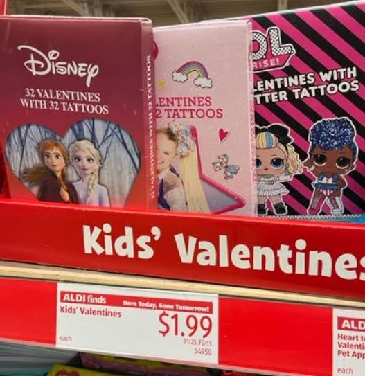 There are fun, new items at Aldi this week! One of my favorite items is the $1.99 box of Valentine’s for kids – enough for a whole class!!