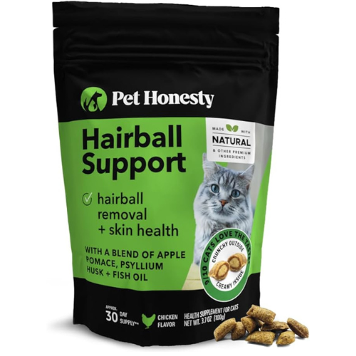 - A TEXTURE AND TASTE CATS LOVE: Hairball Support is a delicious chew that helps promote the removal of hairballs and support skin health. The result? Less of those horrible noises that have you running for the paper towels again. Powerful wholesome ingredients are packed inside a unique texture format that’s crunchy on the outside and creamy on the inside, offering a taste and texture combination that cats love.