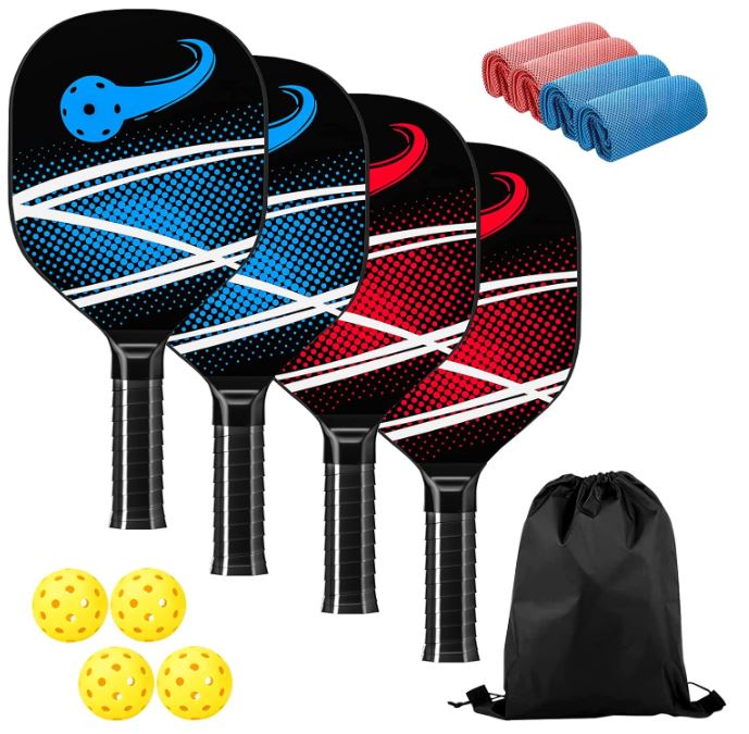 This set contains (4) wooden paddles, (4) pickleballs, (4) cooling towels and a bag. If you’ve never played before, this set is perfect for beginners!