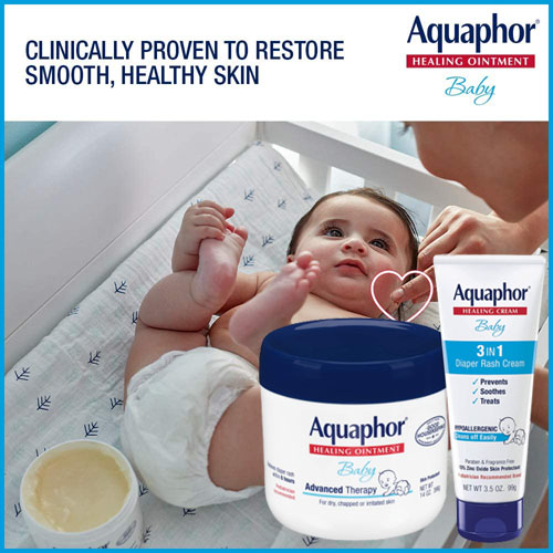 • If the diaper area does get irritated, use soothing Aquaphor Baby Diaper Rash Cream to soothe and treat mild to moderate diaper rash flare-ups. Aquaphor Baby Diaper Rash Cream is formulated with Zinc Oxide to protect your baby’s delicate skin, effectively treat diaper rash.