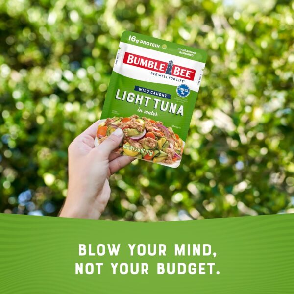 - Pack of 12, 2.5 ounce ready to eat pouches of BUMBLE BEE Premium Light Tuna in Water