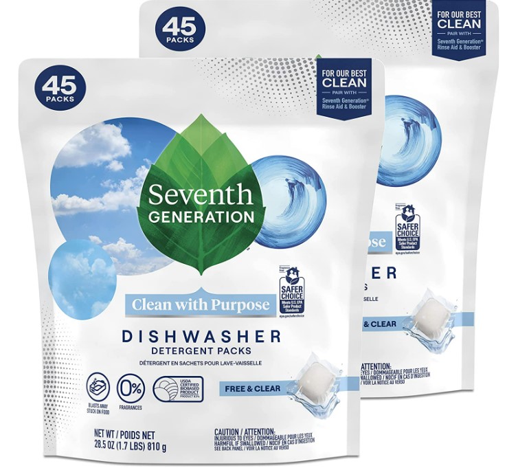 2-Pack Seventh Generation Dishwasher Packs (45 per bag ) – $24.54