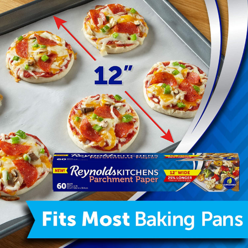 - REYNOLDS PARCHMENT PAPER: Contains one roll of Reynolds kitchens parchment paper, measuring 60 square feet