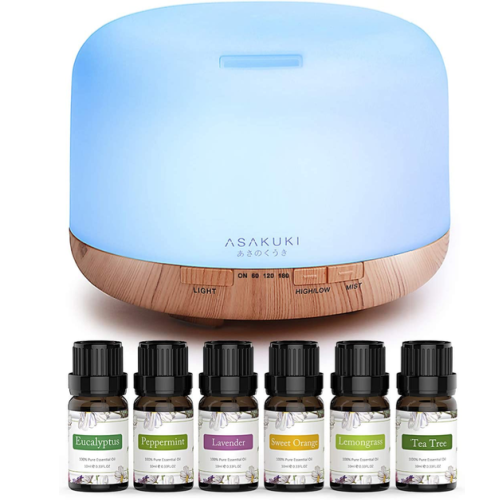 Stay calm and relaxed with this Diffuser + 6 pack oils from Asakuki on amazon will allow you to indulge in relaxation. This ultrasonic essential oil diffuser is an amazing multifunctional aroma device unlike any other you’ve used. It features a large 500ml water tank, 7 different LED colors, multiple mist diffuse modes, as well as a safety auto-switch that prevents it from overheating in case it runs out of water.
