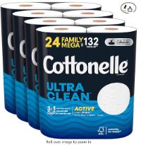 Cottonelle Ultra Clean Toilet Paper, 24 family mega rolls – $27.59