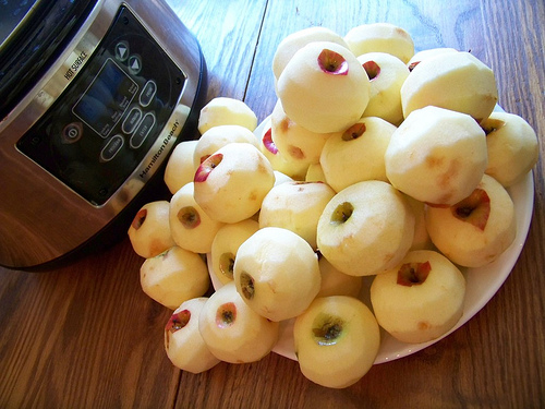 • Peel, core, and slice apples in fourths.