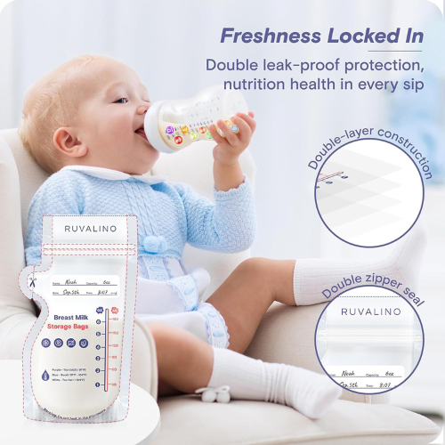• Space-Saving Storage: These breast milk storage bags are perfect for moms to freeze expressed breast milk in the freezer or fridge, lying flat for compact freezing(alternate bag direction) & faster thawing, or standing upright with a gusseted bottom. Made from pre-sterilized & food-safe polyethylene, the milk bags are hygienic for storing or defrosting milk and resist bursting in the fridge, safely building your milk bank