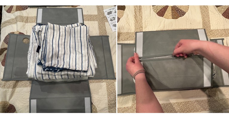 The instructions are pretty simple, and yes you do need to actually fold the sheets. I was worried that it would be like trying to shove sheets back into the tiny package you bought them in. Thankfully you don’t need to try to fold them tight, just fold them in a reasonable way and the organizers still close!