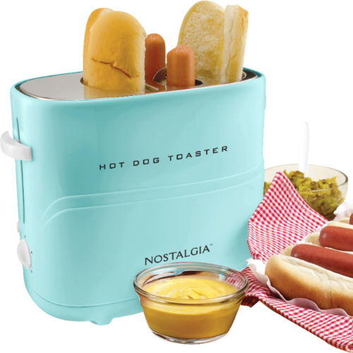 While supplies last, score a HOT Early Black Friday deal at Best Buy on Nostalgia Hot Dog Toaster. Prepare delicious hot dogs with this aqua Nostalgia retro pop-up toaster. The adjustable heat settings let you cook hot dogs to preferred doneness, while the drip tray slides out easily making cleaning simple.