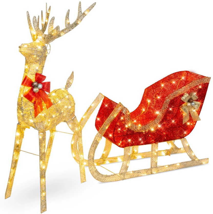 Lighted Christmas Reindeer & Sleigh Outdoor Decor Set w/ LED Lights – $69.99 (reg. $230)