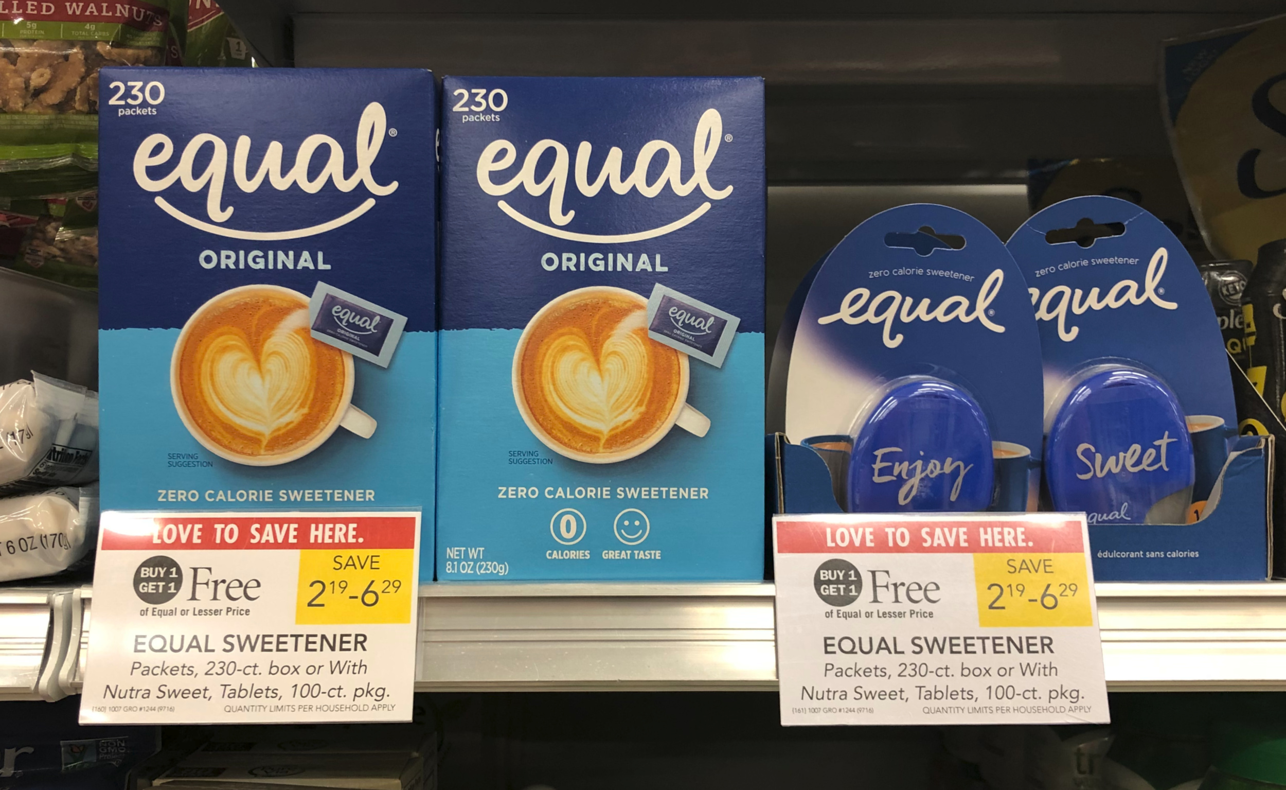Equal Sweetener, Packets, 230 ct, or Tablets, 100 ct, BOGO $2.19 – $6.29