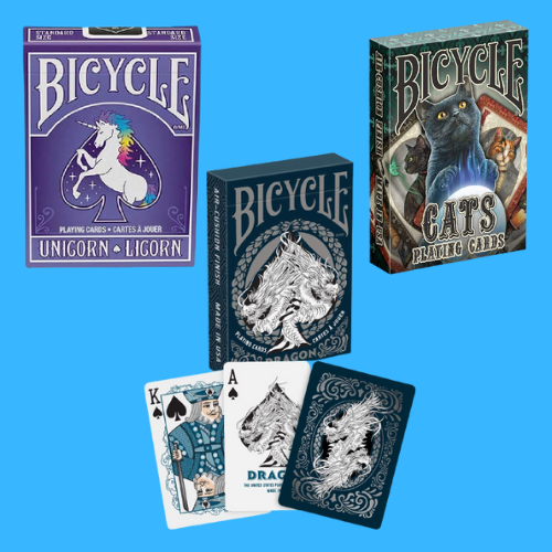 Hop over to Amazon and get a deal on Bicycle Playing Cards. These Bicycle Playing Cards feature unique illustrations of dragons, unicorns, and cats. Have fun while playing the classic games of these deck of cards with the standout designs.
