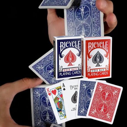 - Standard issue of 2 playing card decks of Bicycle Playing Cards – available in red and blue with the iconic Rider Back design