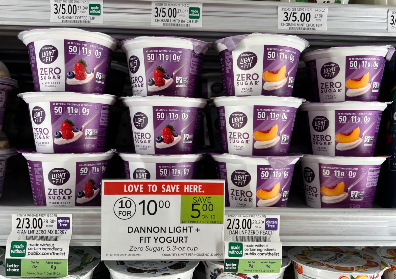 Big Savings On Delicious Dannon Light + Fit Zero Sugar Yogurt – Just $1 Per Cup At Publix