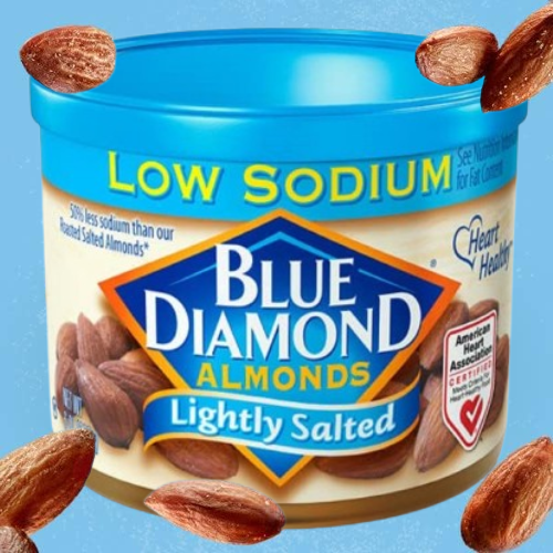 - Contains 1 – 6 ounce tins of Blue Diamond Lightly Salted Almonds