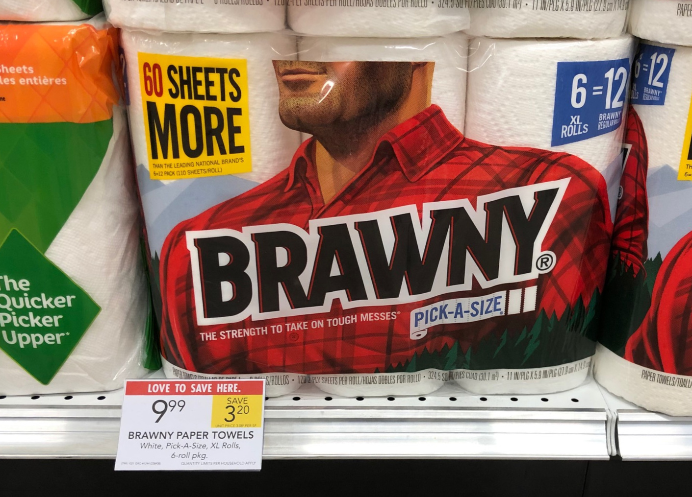 Brawny Paper Towels, White, Pick-A-Size, XL Rolls, 6-roll, $9.99 (reg $13.19)