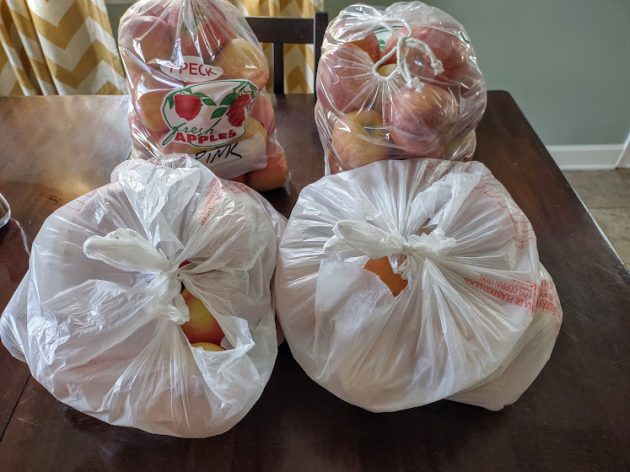 45+lbs of Pink Lady and Cameo Apples from our favorite roadside stand. The ones in the bags are seconds. – $26.00