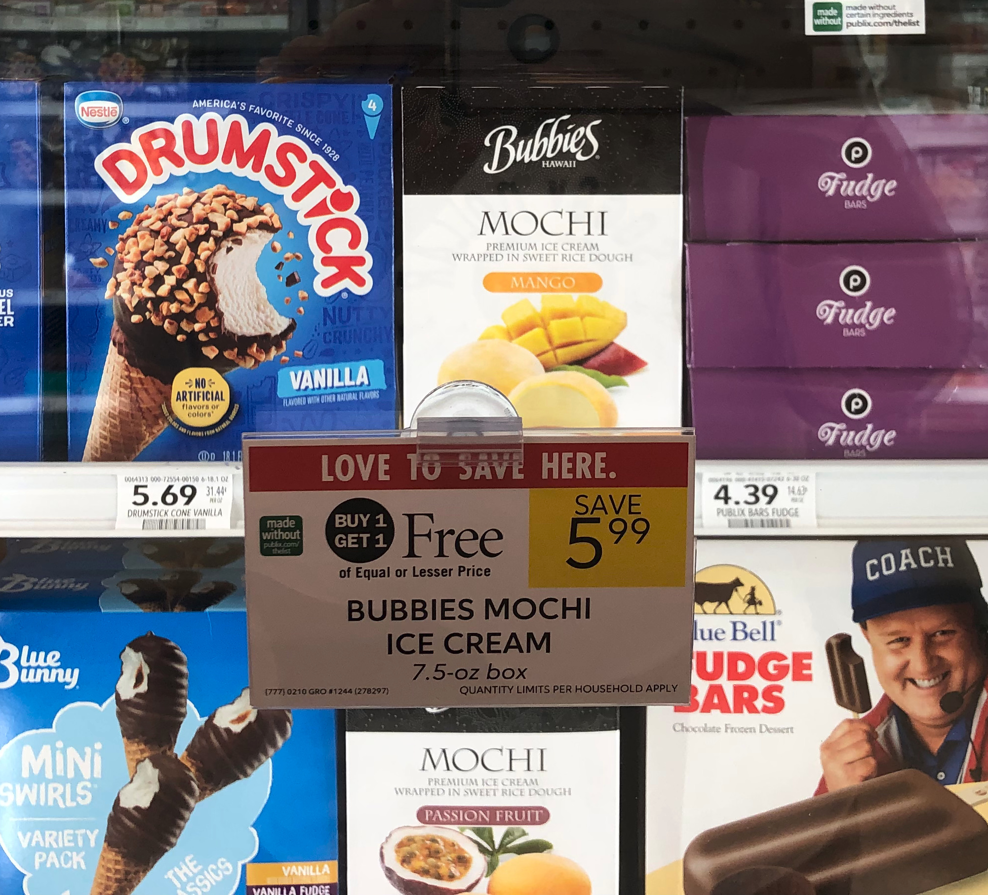 If you are looking for something sweet pick up Bubbies Mochi Ice Cream at Publix. Combine the BOGO sale and Ibotta to pay just $2 per box…way better price than the regular price of almost $6!