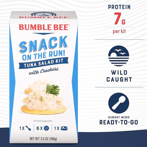 - CONVENIENT SNACKS: Enjoy Bumble Bee Snack on the Run! tuna salad with crackers kits as a great-tasting, protein packed snack, lunch or as part of any other meal; Perfectly sized for your lunch box or lunch bag